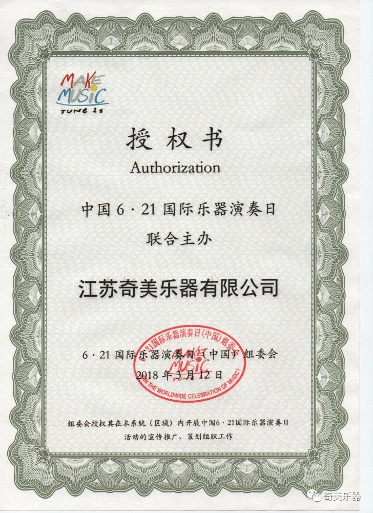 让我们相约2022“中国6.21国际乐器演奏日”来源:江苏奇美乐器有限公司 让我们相约2022“中国6.21国际乐器演奏日” 今年是“中国6·21国际乐器演奏日”活动第七年。六年来,中国组委会以“乐器成为家庭标配,音乐成为生活刚需”为目标,倡导“每个国民一生学会一件乐器,每个家庭一年听一场音乐会”,打造了富有中国特色和时代风格的系列活动,发展迅速,特色鲜明,助推了音乐文化发展。奇美公司作为6·21国际乐器演奏日的联合主办单位,将围绕永恒主题“音乐让生活更美好”,积极组织学校、乐团、社会团体等大众参与者参加活动。